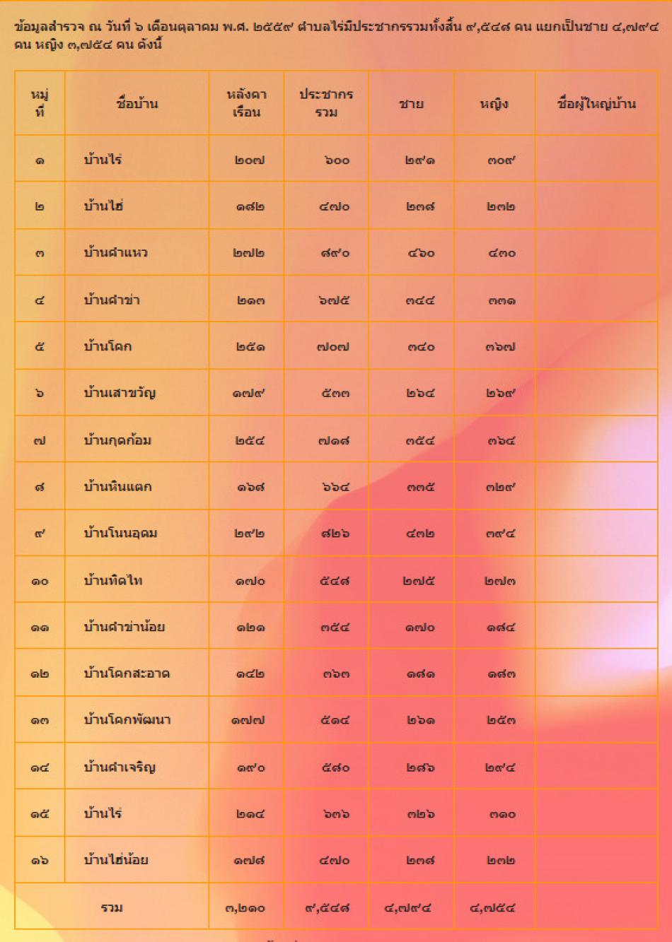 ยินดีต้อนรับ เข้าสู่เว็บไซต์ เทศบาลตำบลไร่ อำเภอพรรณานิคม จังหวัดสกลนคร